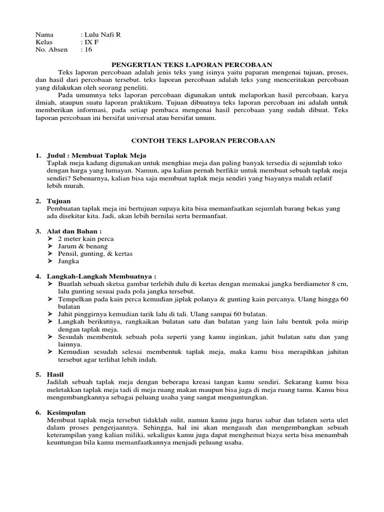 Contoh Teks Laporan Percobaan Apa Saja