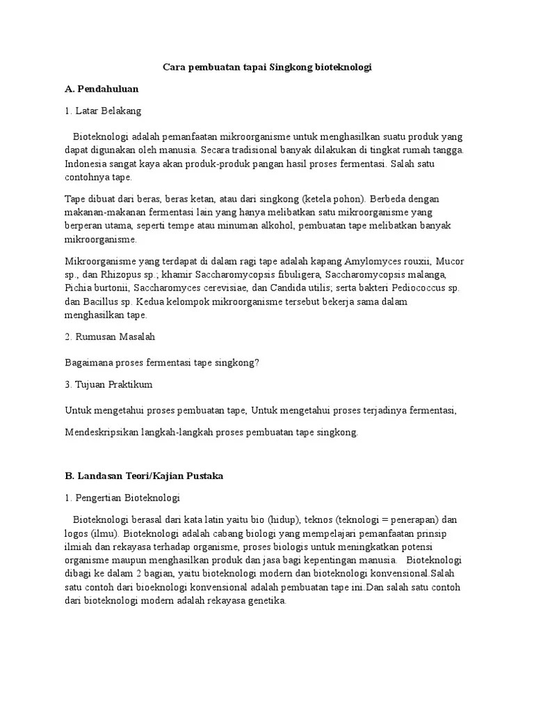 Hal ini lah yang terkadang membuat bingung para pelajar karena belum mengenal bentuk teks laporan percobaan padahal bentuknya sangat sederhana. Contoh laporan tentang pembuatan tape. Ada pun selain metode fermentasi singkong juga sangat berpengaruh pembuatan tape ini. Dalam proses pembuatan donat ada proses proses tertentu yakni menyiapkan semua alat dan bahan membuat adonan membuat adonan menjadi kalis dan halus kemudian didiamkan selama beberapa menit dan dibuat layaknya sebuah donat dan digoreng.