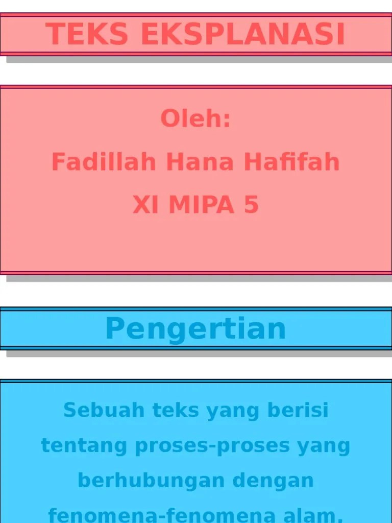 Ppt teks eksplanasi kelas xi. Rpp ini merumuskan pengertian teks eksplanasi mengidentifikasi informasi dari teks eksplanasi berupa paparan kejadian suatu fenomena alam yang diperdengarkan atau dibaca serta meringkas isi teks eksplanasi yang berupa proses terjadinya suatu fenomena alam. Semua fenomena tersebut tidak hanya kita rasakan dan nikmati saja tapi juga harus kita pelajari mengapa. Materi teks eksplanasi kompleks bahasa indonesia kelas xi 1. Materi teks eksplanasi yang akan kita bahas kali ini yaitu mengenai pengertian struktur teks kaidah kebahasaan dan juga ciri ciri teks eksplanasi.