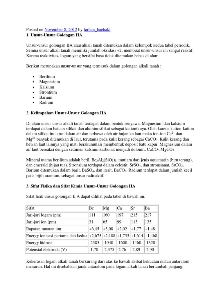 Kecuali berilium logam alkali tanah larut dalam air. Download menghafal tabel periodik cara menghafal tabel periodik golongan a jpg downloaded 30 times 39 kb. Secara struktural mereka memiliki kesamaan yaitu. Golongan iia logam alkali tanah unsur unsur golongan iia disebut logam alkali tanah.