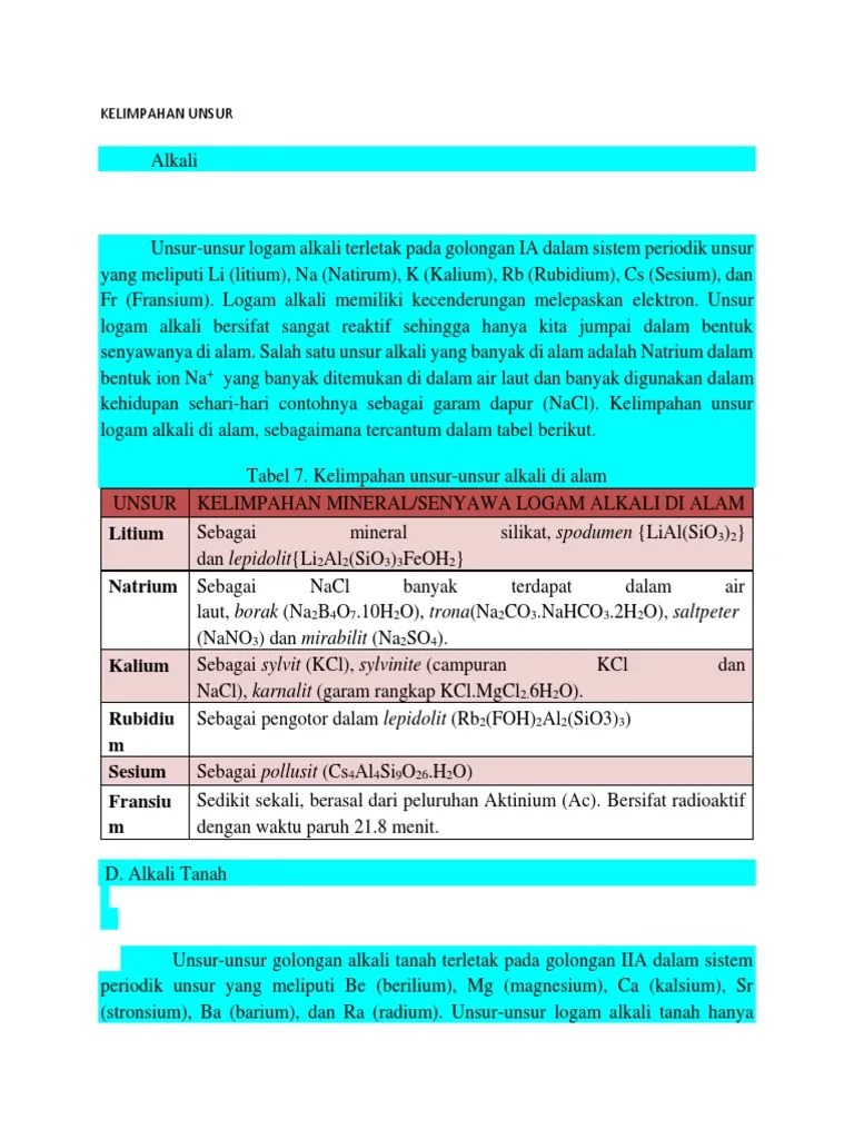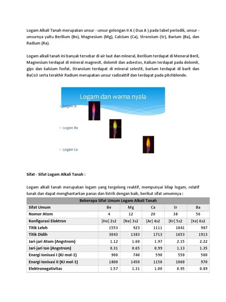 Golongan alkali memiliki sifat sifat fisis dan kimia yang. Sistem periodik adalah suatu tabel berisi identitas unsur unsur yang dikemas secara berkala dalam bentuk periode dan golongan berdasarkan kemiripan sifat sifat unsurnya. Sedangkan golongan kedua dinamakan logam transisi merupakan logam alkali tanah. Kecuali unsur alkali tanah dan gas mulia semua unsur golongan utama mempunyai afinitas elektronn bertanda negatif.