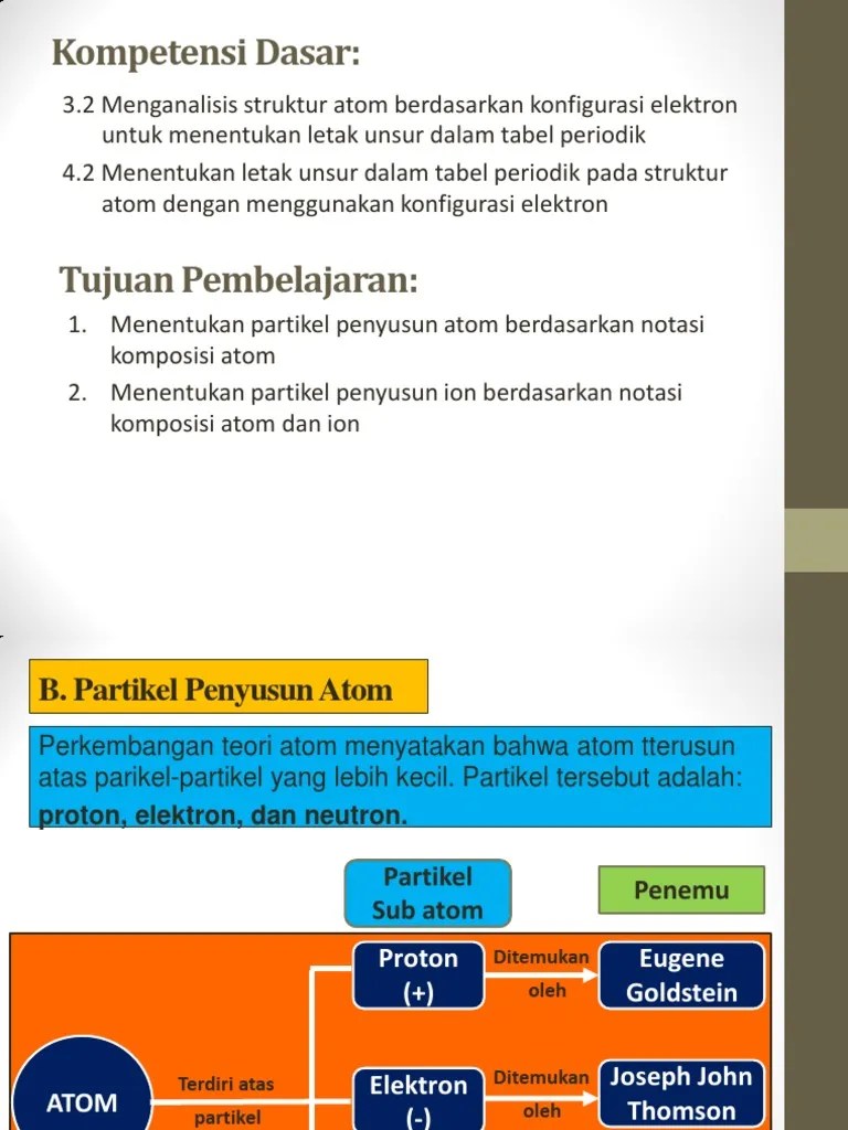 Partikel dasar penyusun atom perkembangan model yang didasari. Sistem periodik adalah suatu tabel berisi identitas unsur unsur yang dikemas secara berkala dalam bentuk periode dan golongan berdasarkan kemiripan sifat sifat unsurnya. Partikel dalam atom kali pertama ditemukan oleh fisikawan inggris joseph j thomson pada 1897. Tentukan nama atom atau ion dari data partikel dasar penyusun atom ion tersebut yang ada di bawah ini.