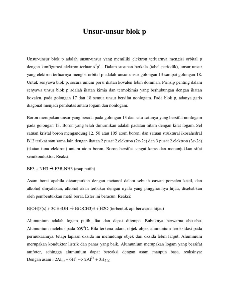 Tabel periodik unsur blok p. Singkatnya ini adalah sebuah tabel yang menampilkan unsur unsur kimia yang disusun berdasarkan nomor atom jumlah proton dalam inti atom konfigurasi periodik dan keberulangan sifat kimia. Pengertian dari tabel periodik sendiri ialah sebuah tabel yang menampilkan unsur unsur kimia. Tabel periodik juga terbagi menjadi 4 blok yang pertama blok s p d dan f. Perbedaan utama unsur blok s dan blok p.