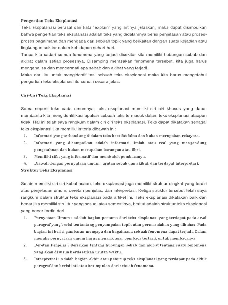 Teks eksplanasi beserta struktur dan penjelasannya.