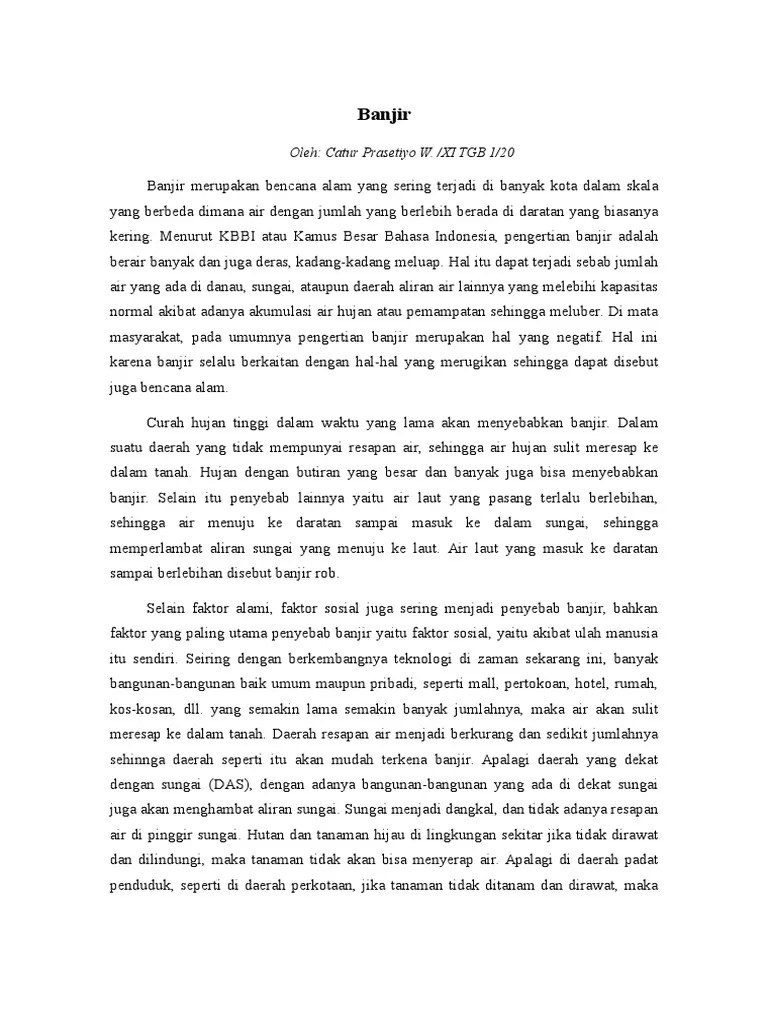Kota jakarta senantiasa sudah menjadi langganan banjir tiap tahunnya. Dimungkinkan untuk menggunakan istilah ilmiah. Banyak sekali peristiwa alam yang terjadi di bumi kita seperti tsunami banjir gunung meletus tanah longsor indahnya pelangi dan masih banyak yang lainnya nah mengapa dan bagaimana suatu peristiwa tersebut bisa terjadi. Berikut ini ada contoh teks eksplanasi banjir bandang beserta strukturnya jadi klaian gak usah bingung lagi mana bagian masing masing struktur.