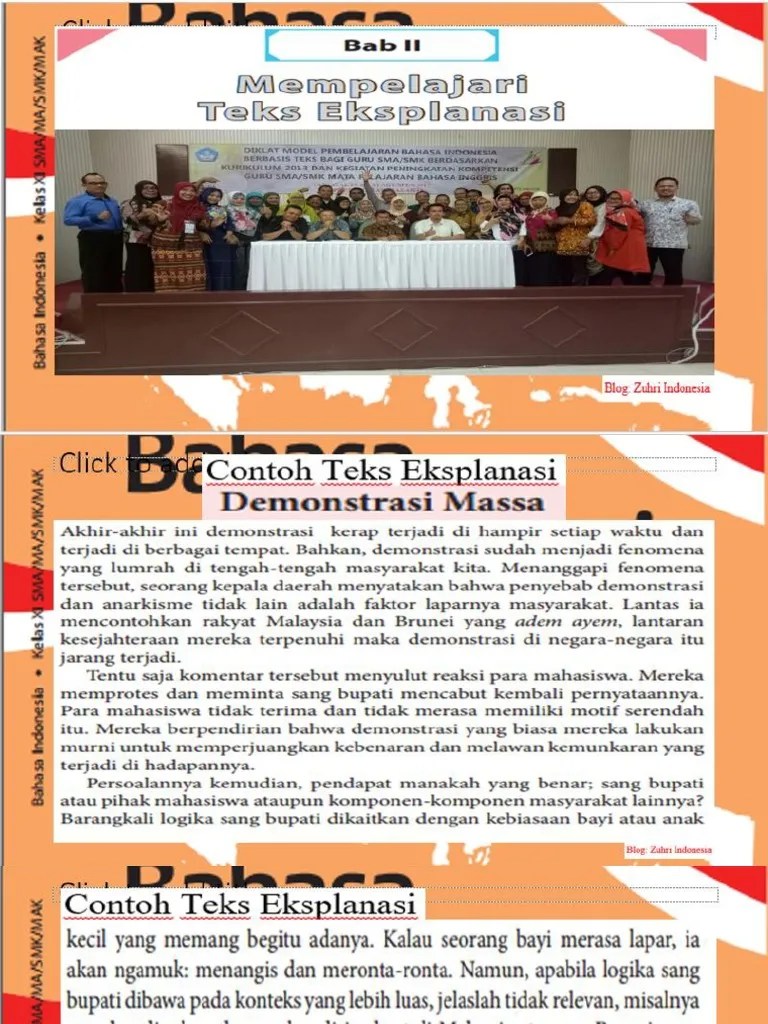 Mempresentasikan mengomentari dan merevisi teks eksplanasi yang disusun. Eksplanasi berasal dari bahasa asing inggris yang berarti tindakan menerangkan atau menjelaskan dan keterangan pernyataan atau fakta yang menjelaskan the contemporary english indonesian dictionary. Teks i menggunakan keterangan cara teks ii menggunakan keterangan waktu e. Berikut contoh soal pg b indonesia kelas 11 semester satu kurikulum 2013 untuk siswa sma ma mak ma sederajat.