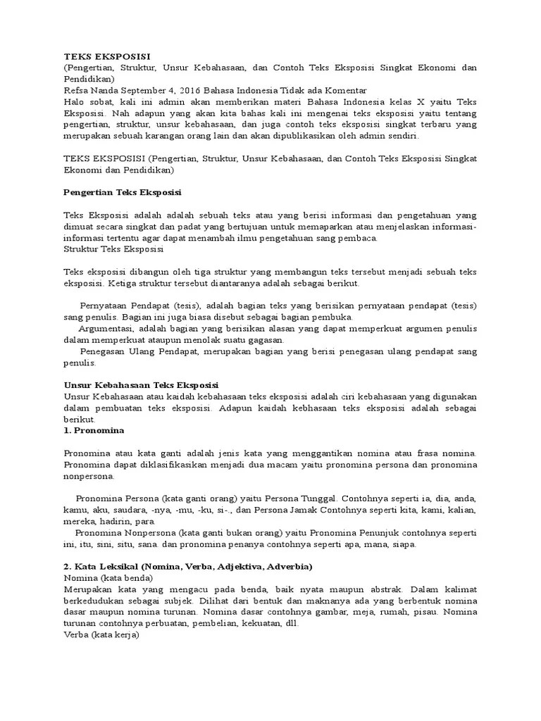 Teks eksposisi contohnya. Yuk kita pelajari jenis dan contohnya. Teks eksposisi ciri fungsi struktur kaidah contoh untuk pembahasan kali ini kami akan memberikan ulasan mengenai teks eksposisi yang dimana dalam hal ini meliputi pengertian ciri fungsi struktur kaidah dan contoh nah agar lebih dapat memahami dan mengerti simak ulasan selengkapnya dibawah ini. Untuk memahami jenis jenis teks eksposisi beserta contohnya pembaca perlu melakukan proses berpikir dan melibatkan pengetahuan. Teks eksposisi adalah sebuah paragraf atau karangan yang didalamnya terkandung informasi informasi serta juga pengetahuan yang ditulis dengan tujuan untuk dapat memberikan atau menjelaskan pengertian dengan penulisannya yang singkat akurat serta padat.