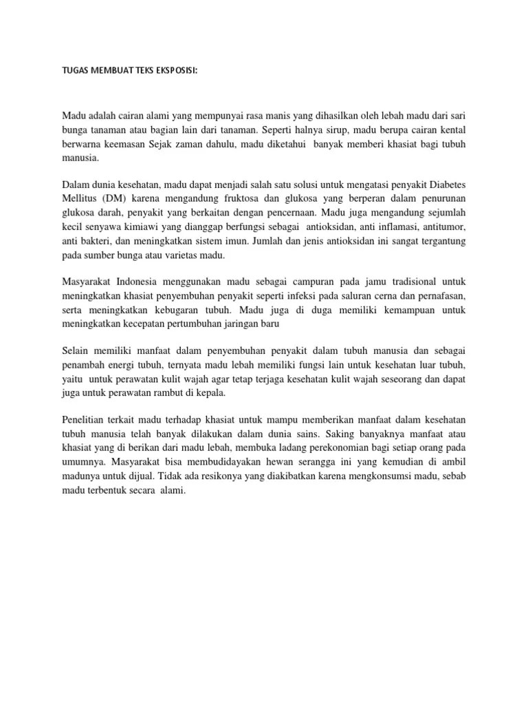 Secara singkat teks eksposisi berarti menjelaskan suatu objek secara jelas dan singkat. Biasanya kita akan disuruh oleh guru kita untuk membuat satu paragraf contoh teks eksposisi tentang suatu tema tertentu. Manfaat makanan sehat bergizi bagi tubuh. Contoh teks eksposisi tentang pendidikan ekonomi politik kesehatan dan teknologi inilah kumpulan teks eksposisi yang biasa digunakan oleh orang orang untuk membuat informasi yang memiliki isi yang padat dan singkat.