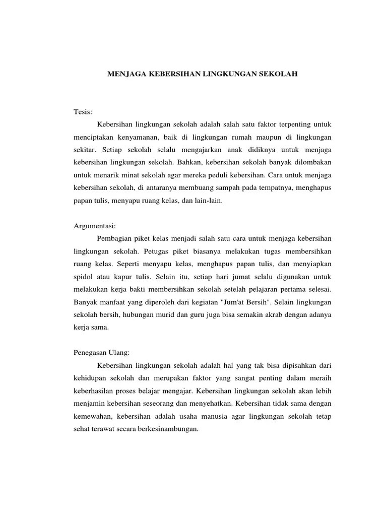 Cara untuk menjaga kebersihan sekolah di antaranya membuang sampah pada tempatnya menghapus papan tulis menyapu ruang kelas dan lain lain. Kebersihan lingkungan harusnya adalah hal yang serius serta mesti diaplikasikan dengan benar benar tetapi sayangnya banyak yang belum juga punya kebiasaan untuk hidup bersih serta sehat dengan melindungi kebersihan lingkungan hingga. Setiap sekolah selalu mengajarkan anak didiknya untuk menjaga kebersihan. Contoh teks eksposisi hukum.